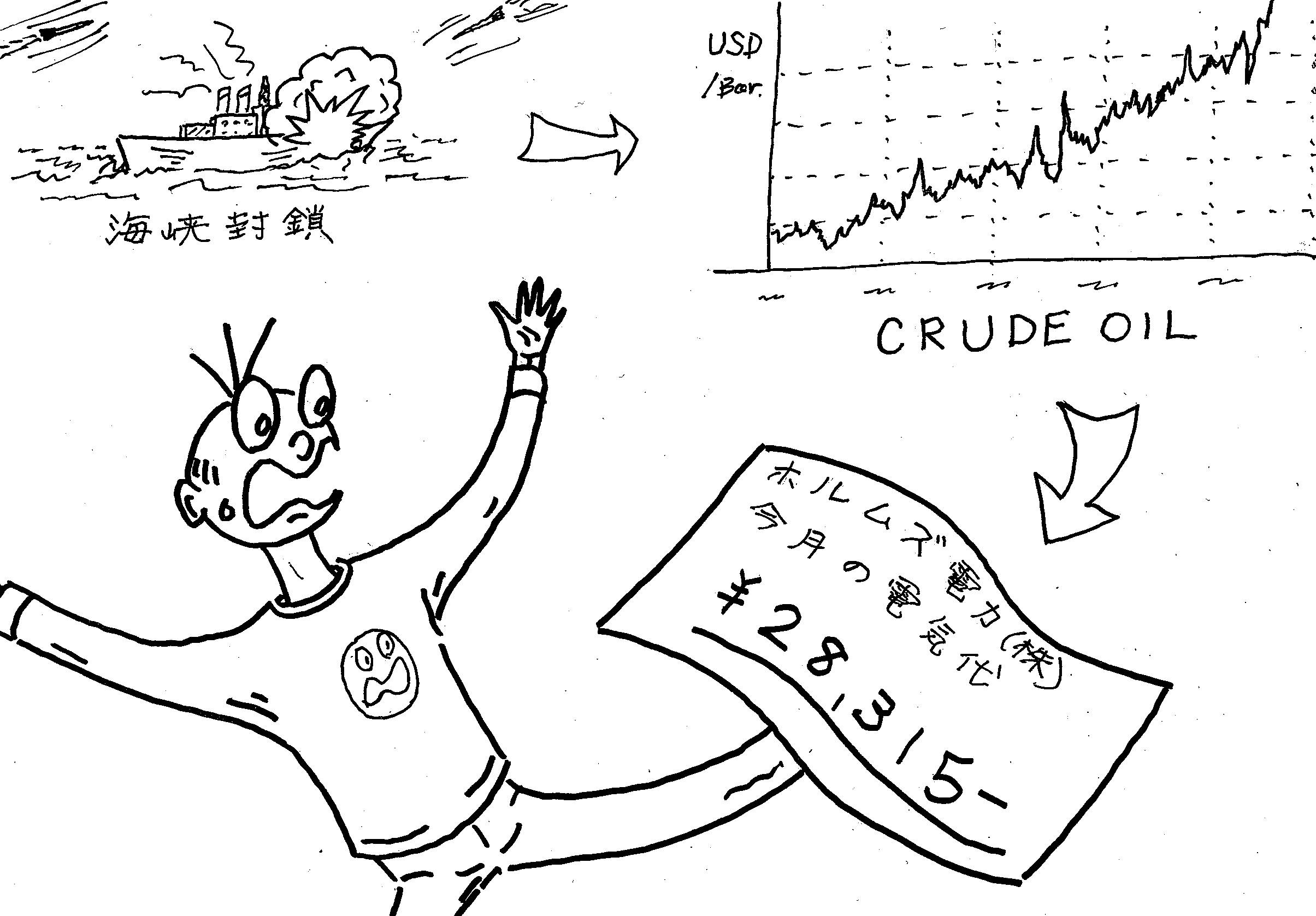 海峡封鎖 ⇒ 石油価格高騰 ⇒ 火力からの電気料金高騰